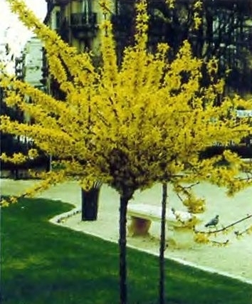 Великолепная почвопокровная форзиция на штамбе.